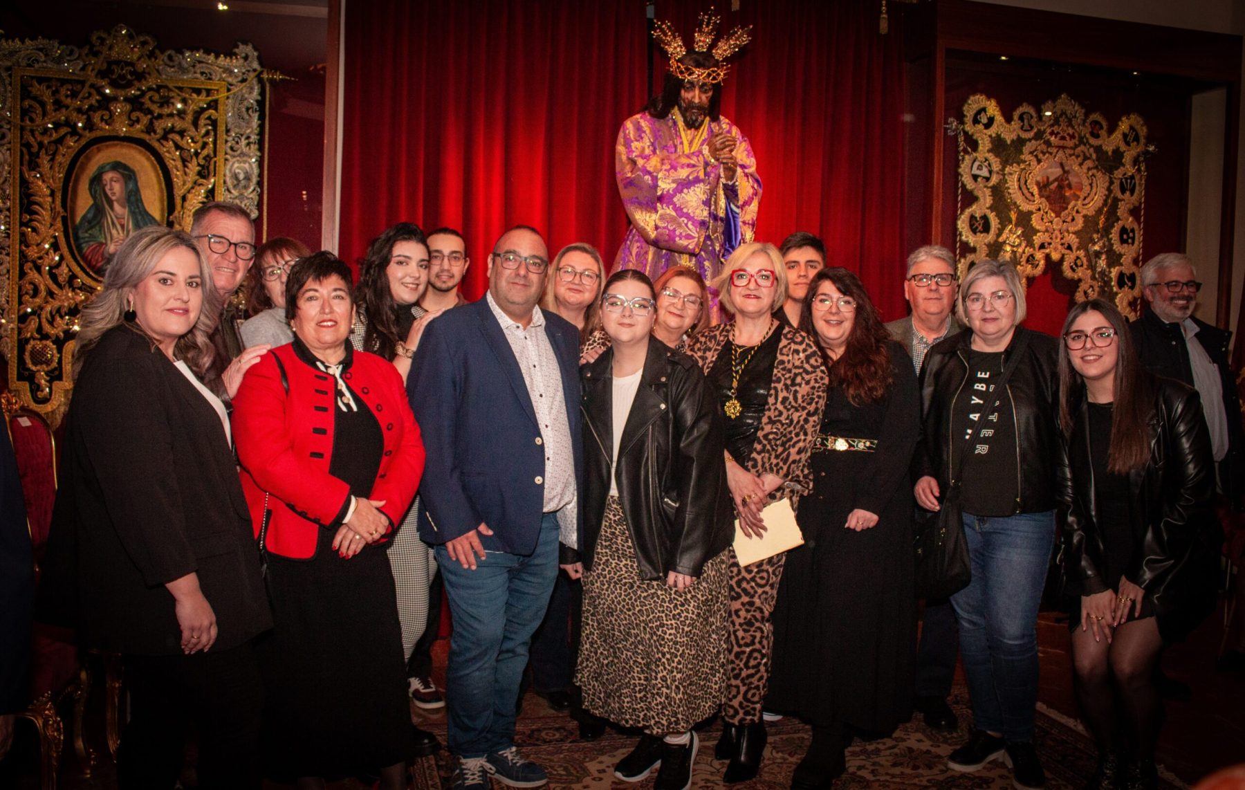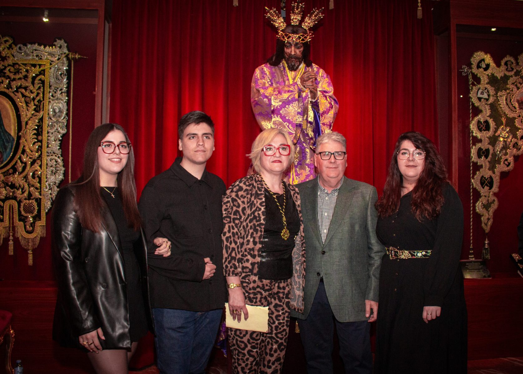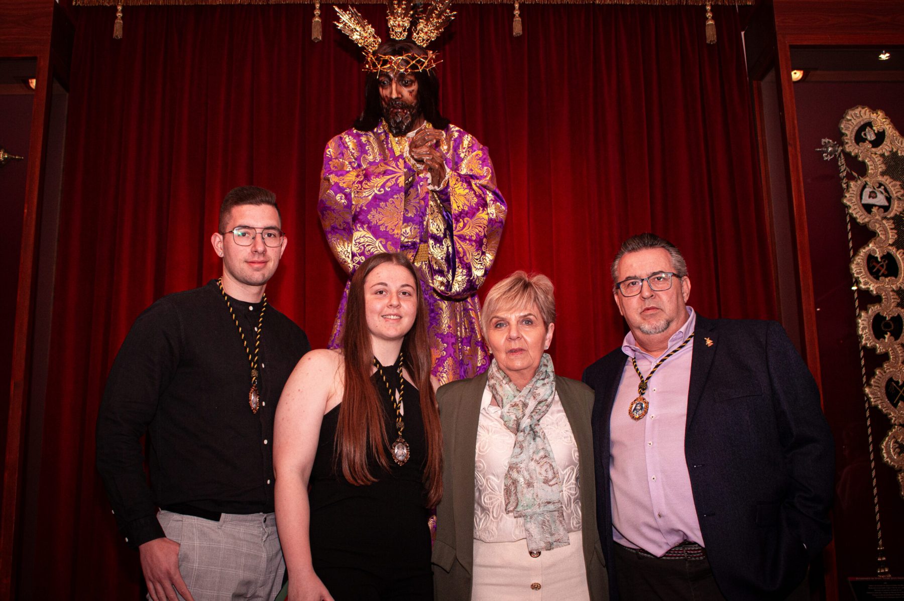 Asimismo, se vivió un momento especial con el nombramiento de Dª. Juana González Pérez como Camarera del Stmo. Cristo de las Cinco Llagas, quien asume desde este momento la responsabilidad y el honor de velar por la imagen. Tras los nombramientos, se procedió a la imposición de medallas a los nuevos hermanos que se incorporan a nuestra familia cofrade.