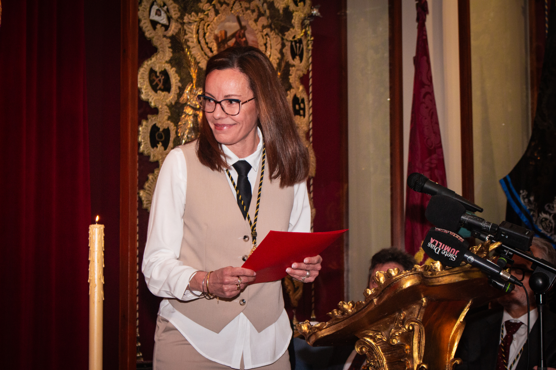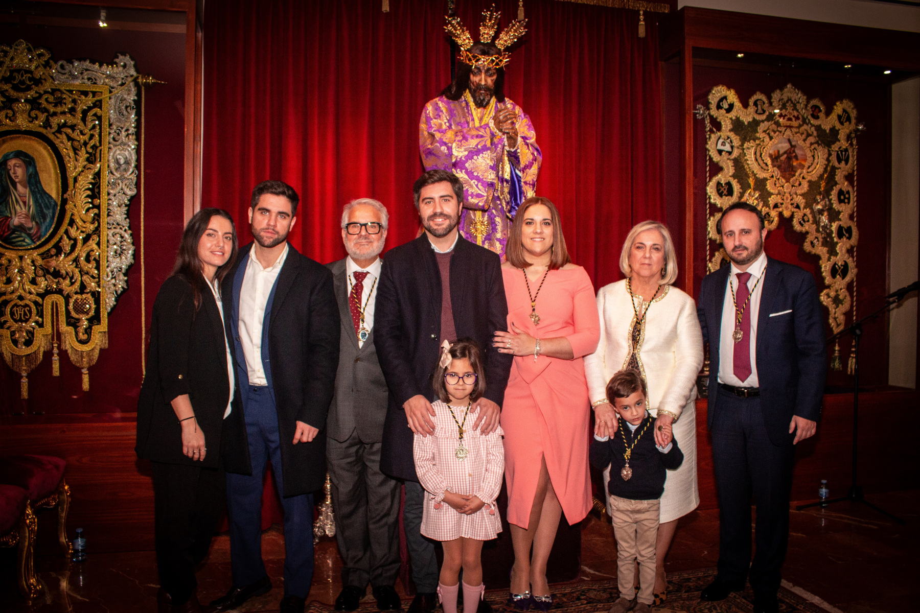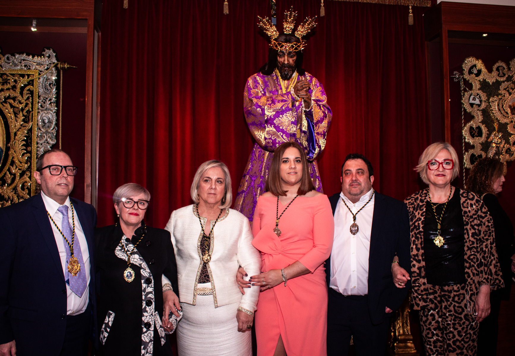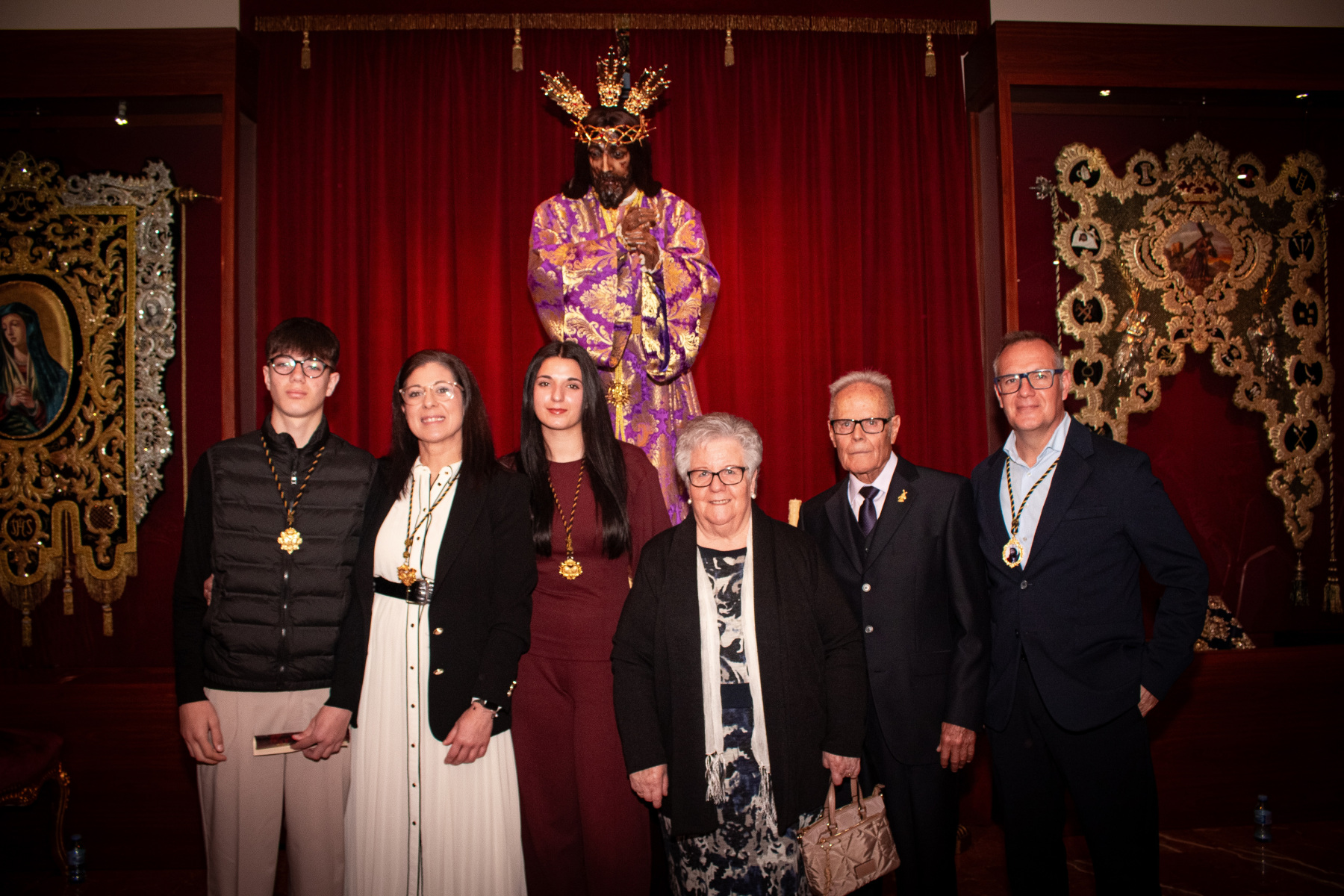 Asimismo, se vivió un momento especial con el nombramiento de Dª. Juana González Pérez como Camarera del Stmo. Cristo de las Cinco Llagas, quien asume desde este momento la responsabilidad y el honor de velar por la imagen. Tras los nombramientos, se procedió a la imposición de medallas a los nuevos hermanos que se incorporan a nuestra familia cofrade.